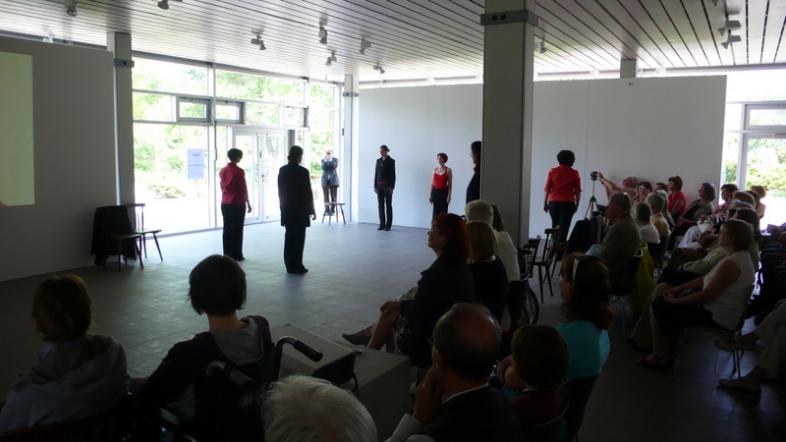 Am 19. und 20. Mai wurde der Ausstellungspavillon des BKV zur Bühne für einen besondern Auftritt. Das Tanzensemble „Pangea.unique dance“ präsentierte sein neues Programm „133 000 + 7 Gesichter“. Dahinter verbargen sich sieben Frauen, die seit Jahren an Multipler Sklerose (MS) leiden und sich im Tanz mit ihrer Krankheit auseinandersetzen, ihrer medizinischen Situation so aber auch neues Selbstbewusstsein entgegensetzen. Der Tanz wird nicht nur zur Therapie, sondern auch zur Gegenwirklichkeit und damit einem Stück neuer Souveränität im Krankheitsalltag.