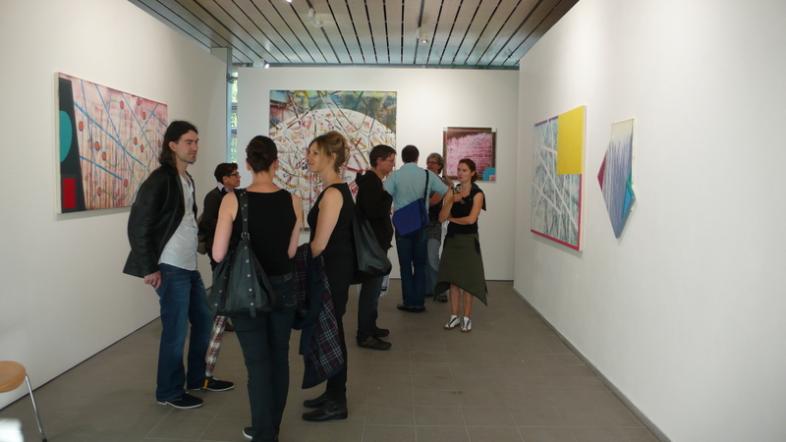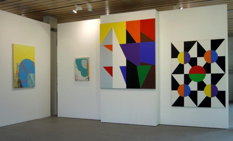 Bertold Mathes, aufgewachsen in der mehrsprachig geprägten Region zwischen Freiburg und Basel und ausgebildet an der Staatlichen Akademie der Bildenden Künste in Karlsruhe und Freiburg, bildet mit gegenständlicher Genauigkeit die Erscheinungsformen der Malerei nach. Felder, Linien, geometrische Körper werden zu Hauptfiguren auf diesen Leinwänden und stoßen mit Gegenformen, malerischen Einwänden, farbigen Einwürfen zusammen. Ist eine Form im Bild entstanden, fügt dieser Maler häufig noch auf der gleichen Leinwand ihren Gegenentwurf hinzu. Am Ende sehen die Betrachter keine Gemälde, sondern erhalten anschauliche Einblicke in den Prozess des Malens und die Logik der Malerei. Abstraktion ist hier so anschaulich wie ein Zeichentrickfilm. Immer wenn purer Wohlklang und gemütliche Harmonie aufscheinen, bilden sich auf Mathes Palette giftige Blasen, neonfarbene Kommentare oder geometrische Alternativen heraus.