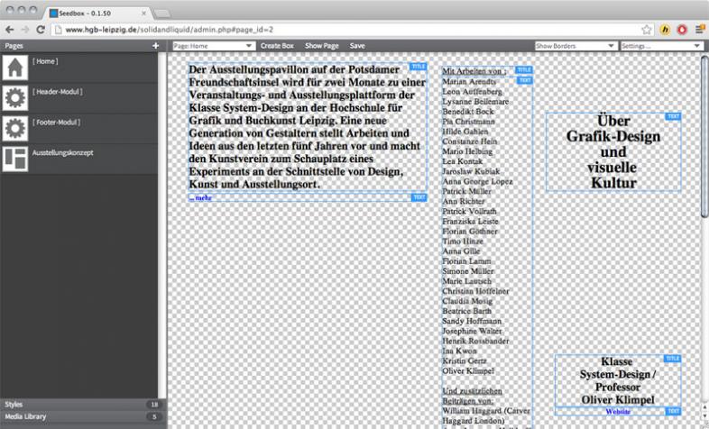 So geht es in der zweimonatigen Ausstellung, zu der verschiedene Vorträge und Workshops gehören, einerseits um Konzeptionen von Grafik und Design, andererseits um die Frage, wie Gestaltung Öffentlichkeit schafft und verändert. Solid & Liquid ist "eine Ausstellung über die Dinge, die uns umgeben: gestaltete Dinge, Bilder und Formen, die Teil unseres Alltags sind und sein wollen", erklären die Leipziger Gestalter. Sie wollen Arbeiten zeigen, "die unsere visuelle Kultur beobachten, kritisch widerspiegeln und kommentieren". Design wird hier nicht als verkaufsfördernde Produktverschönerung verstanden. "Die Art von Design, die hier gezeigt wird, soll Fragen stellen, herausfordern und ins Leben eingreifen." Dabei reicht das Spektrum der ausgestellten Projekte und Objekte vom grafischen Erscheinungsbild bis zum Programmcode einer Software.