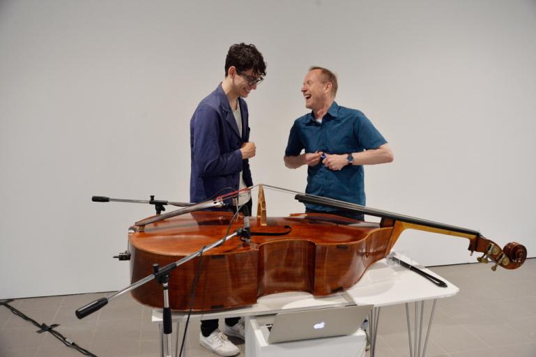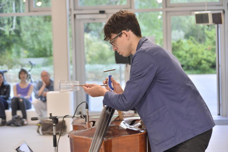 Dabei legen es die zum Teil für den Ort entstandenen, zum Teil speziell für den Ort eingerichteten Stücke darauf an, dem Inneren des Klangs möglichst nahezukommen. Wenn etwa in Filippo Peroccos nur zwei Minuten langer Komposition Tarlo che rode (Der nagende Wurm) der höchste Ton eines Cembalos so schnell angeschlagen wird, dass sich die Schwingungen der Saite, die Anschlaggeräusche der Taste und Manipulationen der Saite im Korpus des Instruments zu einem Kontinuum verdichten, tritt der Pavillon als Resonanzraum an die Stelle des Cembalokorpus und versetzt die Ausstellungsbesucher in die größtmögliche Nähe zu einem Areal des Instruments. Die kleinsten Ton- und Bau-Einheiten eines individuellen Instruments spielen plötzlich eine musikalische Hauptrolle. Die Mikrophone arbeiten aus dem Cembalo fremde und irritierende Spannungen heraus und der Ausstellungspavillon wird zum musikalischen Teilchenbeschleuniger.
