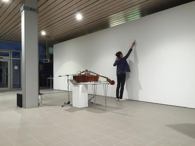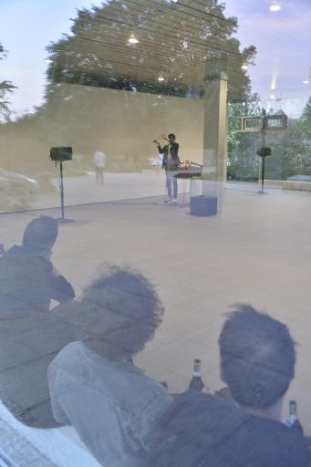 Die Stücke werden ergänzt durch eine Installation von Anke Eckardt, in der kinetische Ultraschalllautsprecher zum Einsatz kommen, die eng begrenzte Hörzonen im Innen- und Außenraum bespielen und so einen beweglichen, sich durch Besucher und andere Reflektoren verändernden Klangraum schaffen. Fallen die extrem gerichteten Schallbeams auf schallharte Oberflächen, werden sie zurückgeworfen. Im Glaspavillon werden so Phantomschallquellen hörbar, die von den Glasscheiben und der raumbegrenzenden weißen Wand zu kommen scheinen.