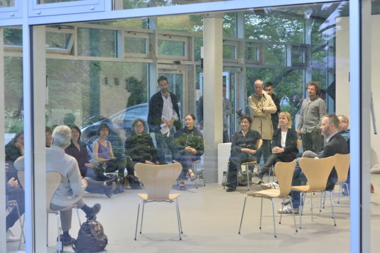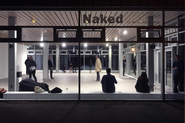 „Naked“ ist also nicht wie eine Chiffre zu decodieren und zu „verstehen“, sondern hängt völlig davon ab, wohin sich willentlich oder unwillkürlich das Interesse des Publikums richtet. Mit seiner offenen Fragestellung schließt das Projekt an eine Reihe von Ausstellungen an, in denen Künstler wie Frank Nitsche, Manfred Pernice, Bettina Allamoda oder Wolfgang Betke die Durchlässigkeit des Pavillon-Gebäudes zwischen Außenraum und Ausstellungsfläche zum Gegenstand künstlerischer Interventionen gemacht hatten. Die Malerin Friederike Feldmann hatte 2013 gar die Scheiben selbst als Bildträger genutzt. Darauf reagiert „Naked“ ebenso wie auf das architekturbezogene Musikprojekt „Schallwandler“ von 2014, als Komponisten wie Ekkehard Windrich und Luc Döbereiner mit Feldaufnahmen aus dem Außenraum arbeiteten oder die Fensterfront als Resonanzfläche und zugleich als Gegenstand kompositorischer Reflexion nutzten.