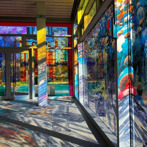 In Potsdam hat Sabine Hornig die gesamte Glasfassade des 1973 errichteten, spätmodernen Glaspavillons bearbeitet. Ihre Installation verwandelt die Pavillonscheiben in einen weitläufigen Bilderbogen, auf dem Demonstrationsszenen, Fassaden des Typenwohnungsbaus aus der Entstehungszeit des Gebäudes und Funktionsarchitekturen der deutschen Demokratiegeschichte miteinander verschmelzen. Ausschnitte des barocken und klassizistischen Potsdam stehen dazu in scharfem Kontrast.
