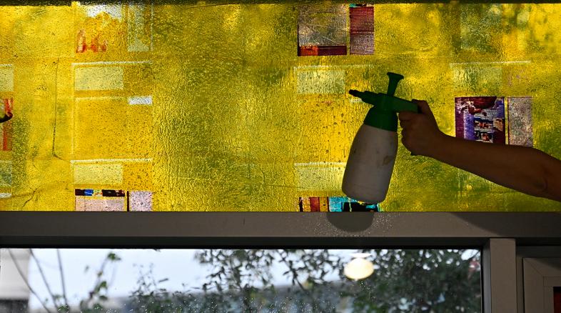 In Potsdam wird Hornig die gesamte Glasfassade des 1973 errichteten, spätmodernen Glaspavillons bearbeiten. Ihre Installation verwandelt die Pavillonscheiben in einen weitläufigen Bilderbogen, auf dem Demonstrationsszenen, Fassaden des Typenwohnungsbaus aus der Entstehungszeit des Gebäudes und Funktionsarchitekturen der deutschen Demokratiegeschichte miteinander verschmelzen. Ausschnitte des barocken und klassizistischen Potsdam stehen dazu in scharfem Kontrast, als müsste sich der demonstrierende Souverän in einem entfesselten Patchwork aus Nostalgie und Utopie, rational gestalteter Gleichheit und theatralischem Pathos neu positionieren.